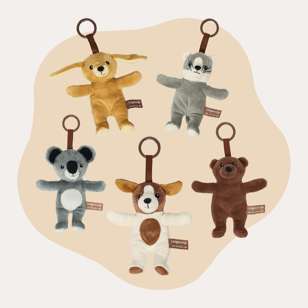 Die Mission von Lotgenootje ist es, überall Ruhe und Geborgenheit zu bieten. Da ein 2 kg schweres Kuscheltier unterwegs nach Schule, Arbeit oder zum Einkaufen oft unpraktisch ist, sind die Reisebegleiter entstanden. So hast du den vertrauten Halt von Lotgenootje immer griffbereit – genau dann, wenn du außerhalb deines Zuhauses zusätzliche Reize erlebst.