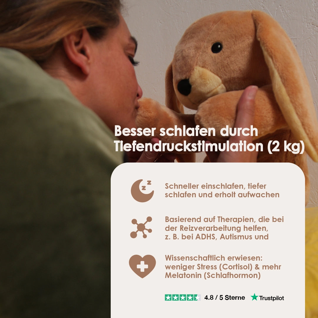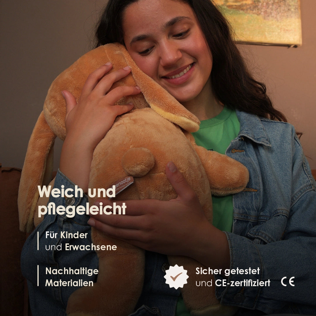 Gewichtete Kuscheltiere eignen sich sowohl für Kinder (ab 3 Jahren) als auch für Erwachsene und können bei Stress, Angst, emotionalen Herausforderungen unterstützen und dem Körper helfen, sich zu entspannen.