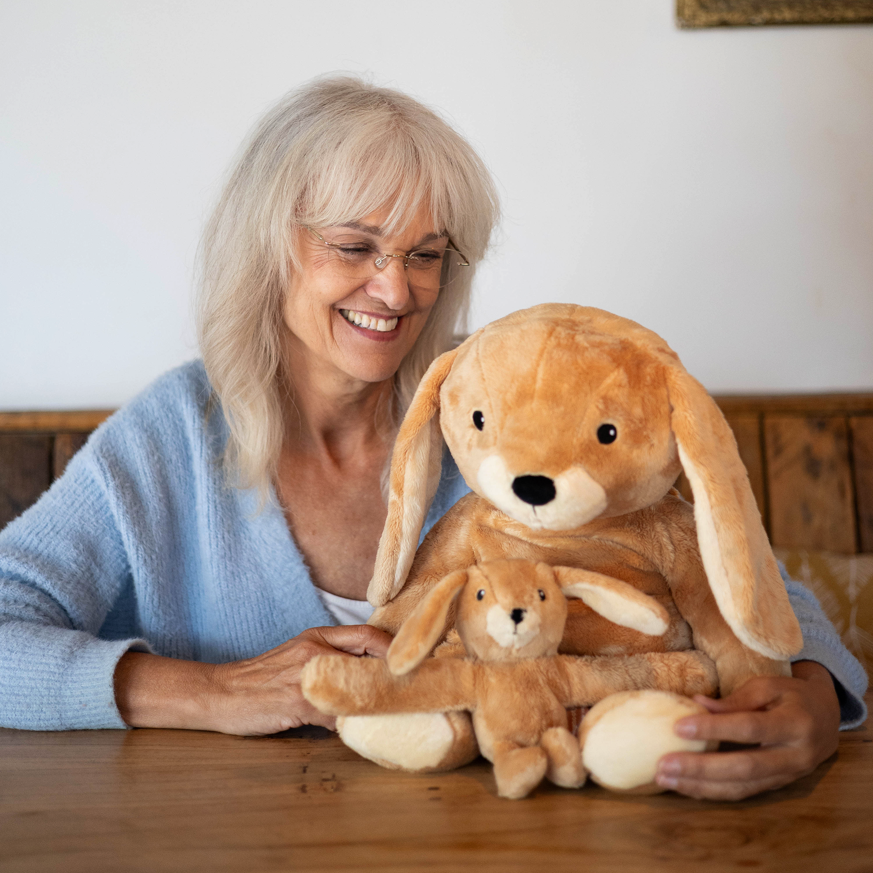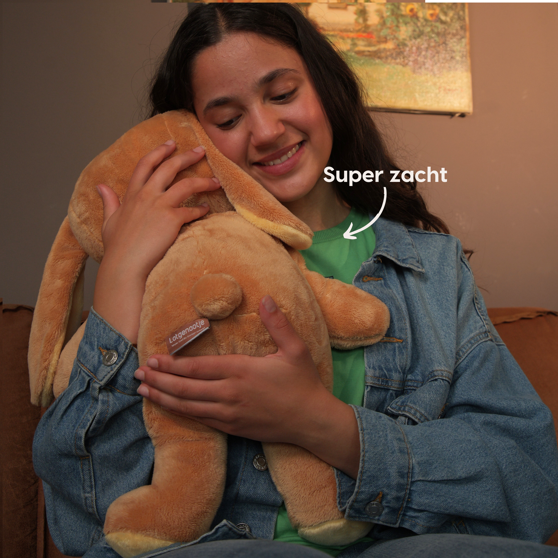 Die Kuscheltiere von Lotgenootje sind einzigartig, da das Gewicht gleichmäßig auf das gesamte Kuscheltier verteilt ist. Dieses besondere Design vermittelt das Gefühl, dass es wirklich jemanden gibt, der einen umarmt!